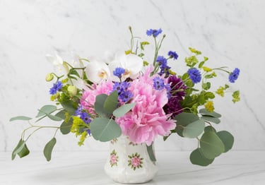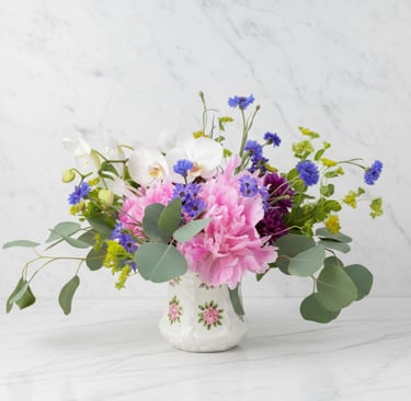 Vintage Swap Option - Recipients will receive a gorgeous, full, designer's choice arrangement in a vintage container to their home each month $95/month Containers will be swapped out each month.